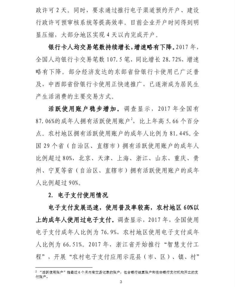 银行结算账户和银行卡广泛普及,全国及农村地区人均持有量平稳增长,总体上实现了“人人有户”;