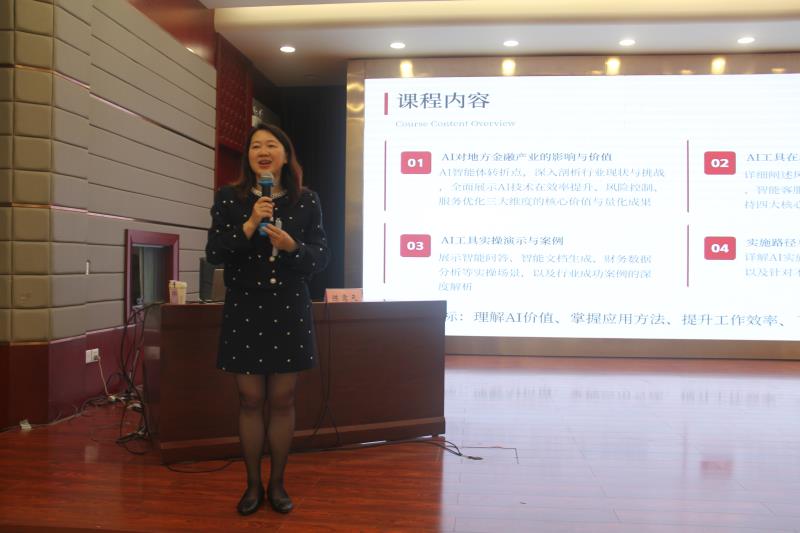 陈意天老师聚焦“人工智能在地方金融行业的应用实战”,通过现场演示与案例拆解,让学员直观学习了解目前主流人工智能工具的使用方法以及在地方金融领域的应用场景,分享人工智能在运营管理、风险防控等场景的实操案例,助力学员提升数智化运营能力,把握AI赋能行业发展的新机遇。