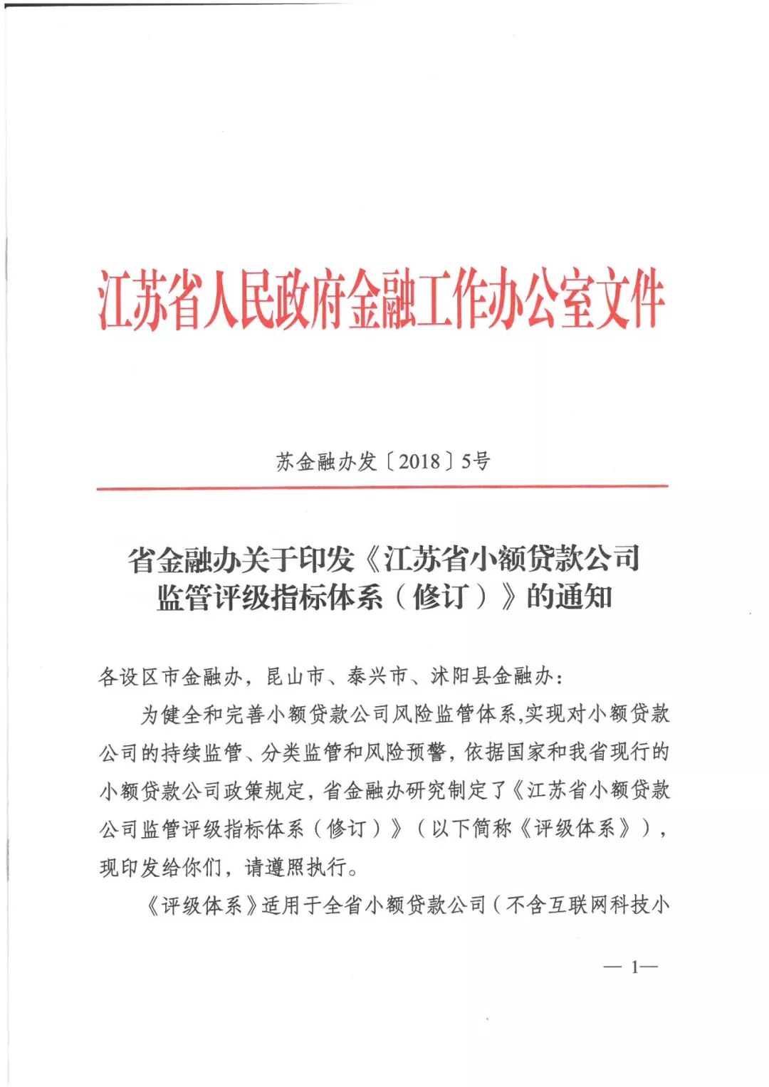 为健全和完善全省小额贷款公司风险监管体系,江苏省金融办分别于2012年、2013年先后制定了江苏省小额贷款公司监管评级办法、江苏省农村小额贷款公司监管评级指标体系,以及江苏省科技小额贷款公司监管评级指标体系,实现了对全省小额贷款公司的持续监管、分类监管和风险预警。近日,江苏省金融办出台文件对小额贷款公司监管评级办法及评级指标体系进行了修订,将更进一步增强监管力度,提升监管效率,促进小贷行业健康发展。