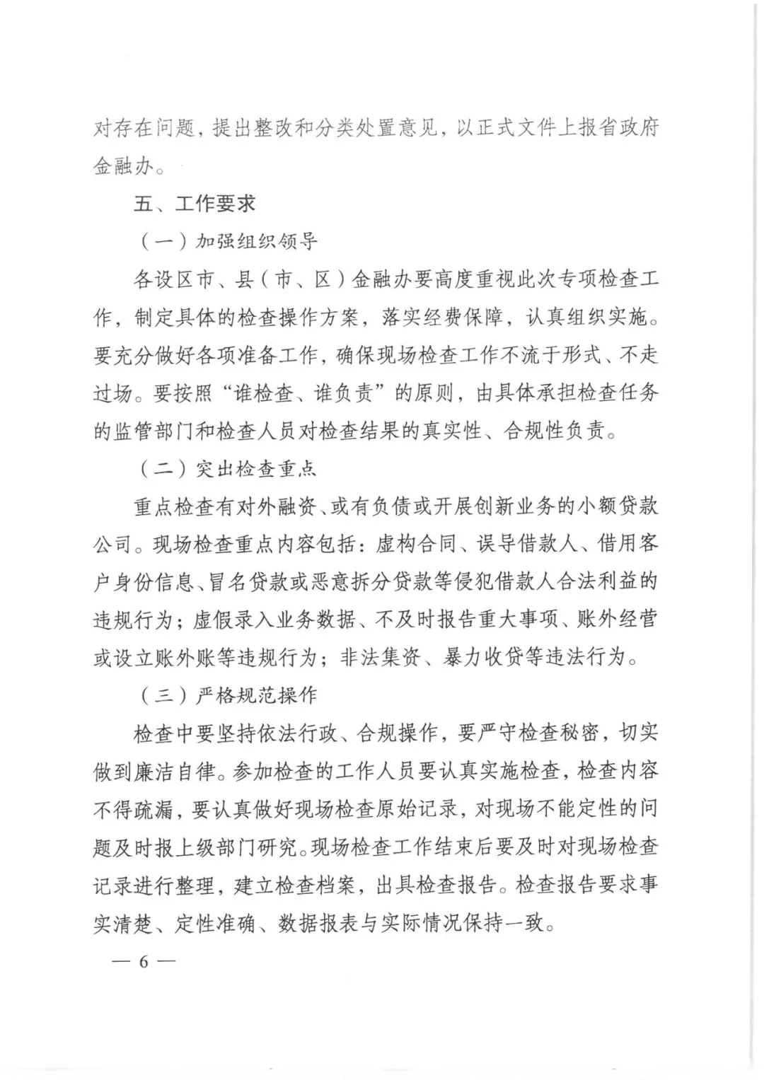 本次专项检查要求加强组织领导、突出检查重点、严格规范操作、强化结果运用,整个检查工作将从2018年1月持续至6月完成,各设区市最终将对存在的问题,提出整改和分类处置意见,并以正式文件上报省金融办。